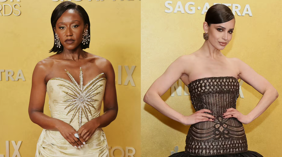 Bintang “One Battle After Another” Chase Infiniti, yang juga nominasi Actor Awards, tampil berkilau dari kepala hingga kaki dengan gaun mermaid Louis Vuitton dan hiasan kepala yang katanya terinspirasi dari Josephine Baker.